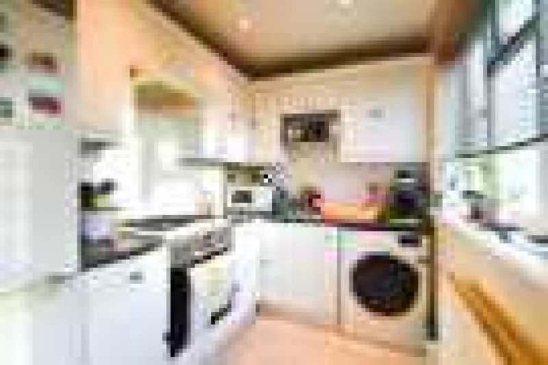 Comprising a range of eye and base level units with laminated work surface, cupboard and drawer space under, gas hob with electric oven and extractor hood, wall mounted gas boiler, single bowl sink with mixer tap, plumbing for washing machine, radiator, rear aspect double glazed window and rear aspect door giving garden access.