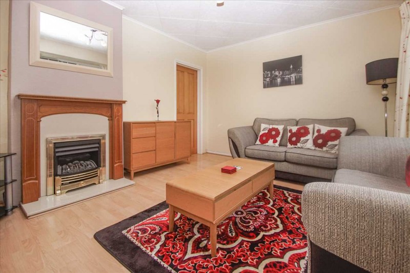 Front aspect double glazed window, radiator, feature fire place with recessed electrical fire. laminated wood effect flooring.