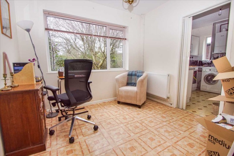 Comprising of a range of fitted wall and base units with laminated work surface, cupboards and draw space under, single drainer sink unit with mixer tap, gas and electrical cooker point, plumbing for automatic washing machine, wall mounted gas boiler, appliance space, rear and side aspect double glazed windows, door to side.