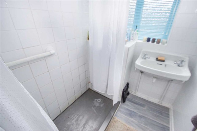 Suite comprising of a walk in shower area, wash hand basin, radiator, rear aspect double glazed window with obscured glass.