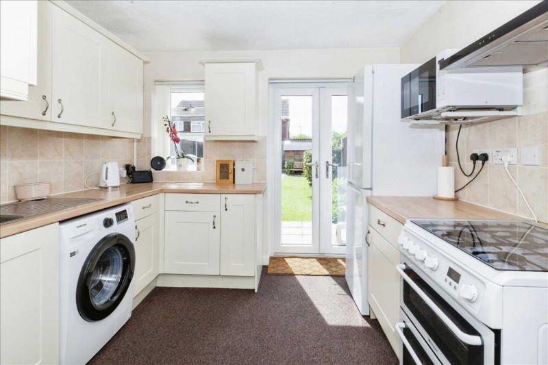 Comprising a range of eye and base level units with work surface, gas cooker point, sink, plumbing for washing machine and rear aspect door giving garden access.