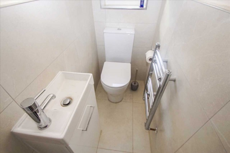 Comprising of a low level w.c., wash hand basin in vanity unit with mixer tap, chrome heated towel rail, tiled walls and flooring, double glazed window with obscured glass.