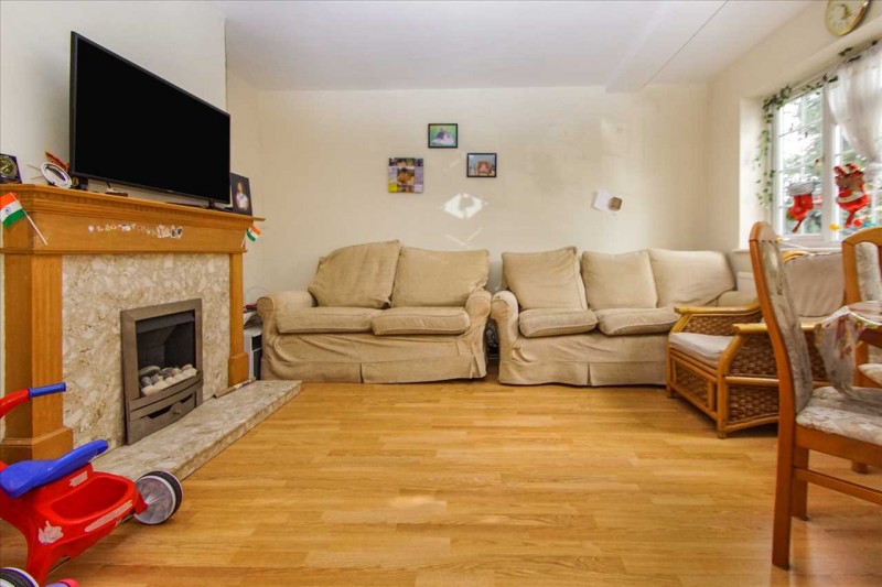 Front aspect double glazed window, radiator, laminated wood effect flooring, wall mounted gas fire.