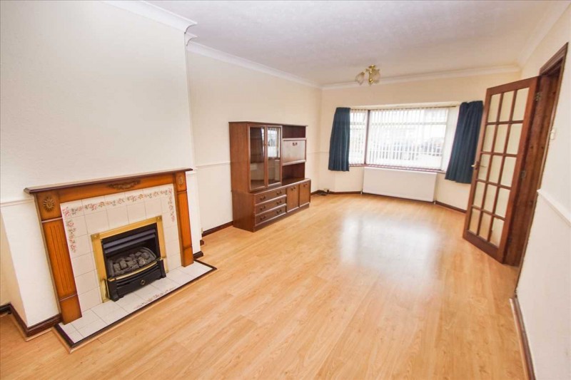 Front aspect bay window, feature fireplace, radiators and double doors to: