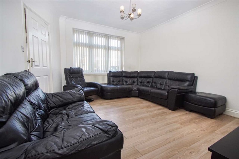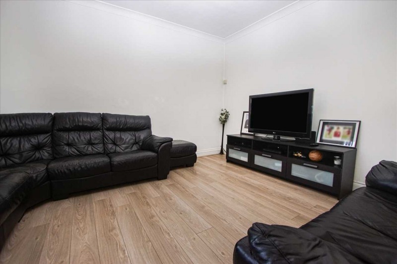 Front aspect double glazed window, laminated wood effect flooring, radiator.