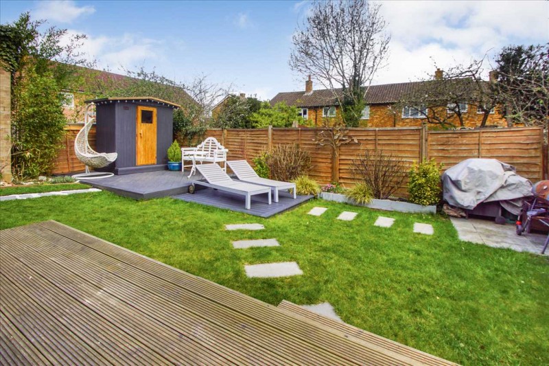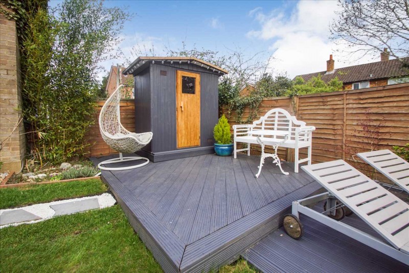 The rear garden has been thoughtfully designed by the current owners and comprises of three decked areas, one that accommodates an external sauna, the remainder of the garden is laid to lawn with a variety of beds and borders.