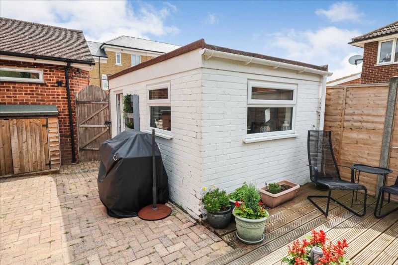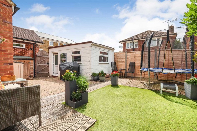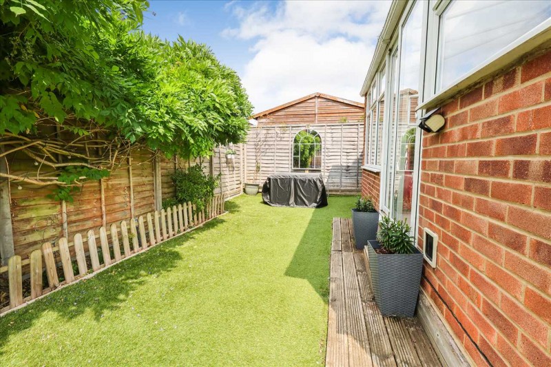 The rear garden which enjoys a southerly aspect, has been thoughtfully designed to accommodate a timber decked area, artificial lawn and blocked paved areas, gated side access.