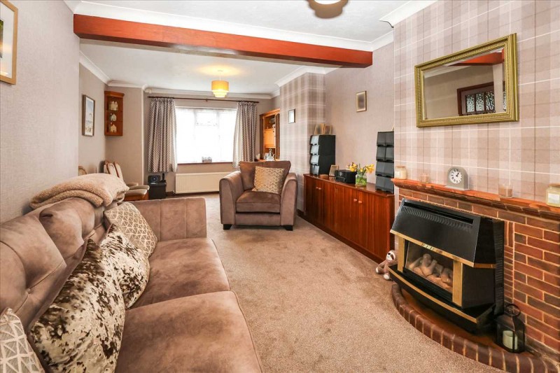 Front aspect double glazed window, feature fire place with recessed gas fire, radiators and double glazed patio doors opening onto rear garden.