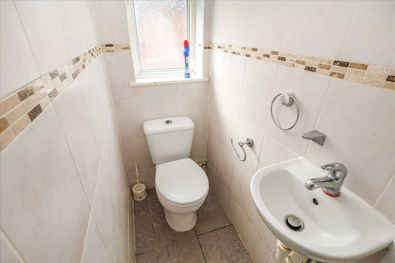 Low level w.c., side aspect window, wash hand basin and extractor.